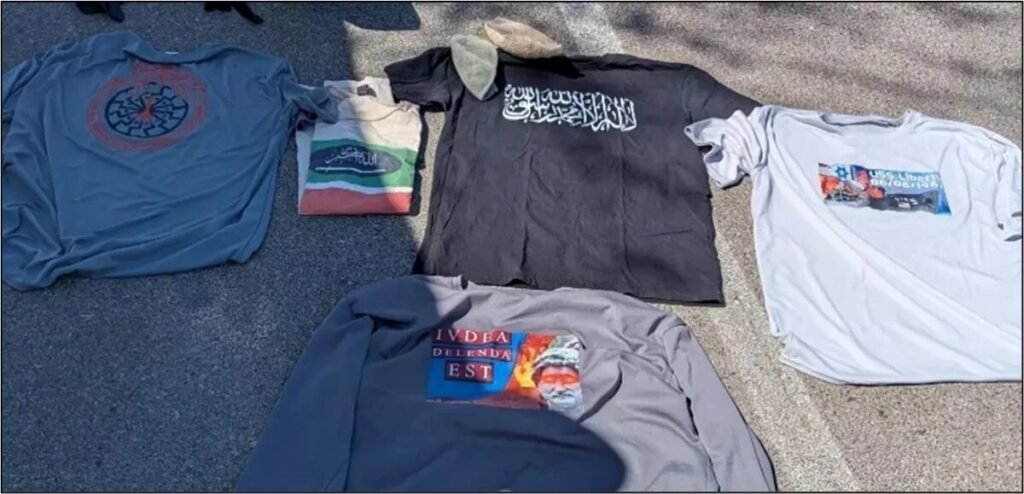 搜查其车辆时,执法人员发现了大量极端主义物品:印有新纳粹符号的T恤、高加索阵线(Caucasian Front)武装组织的旗帜、基地组织(Al Qaeda)旗帜、一条用拉丁文写着“犹太人必须被摧毁”(Judea must be destroyed)的标语,以及其他反以色列和极端右翼标志的衣物。他的手机主屏幕设置为塔利班旗帜图片,手机信息显示他对川普总统强烈不满。